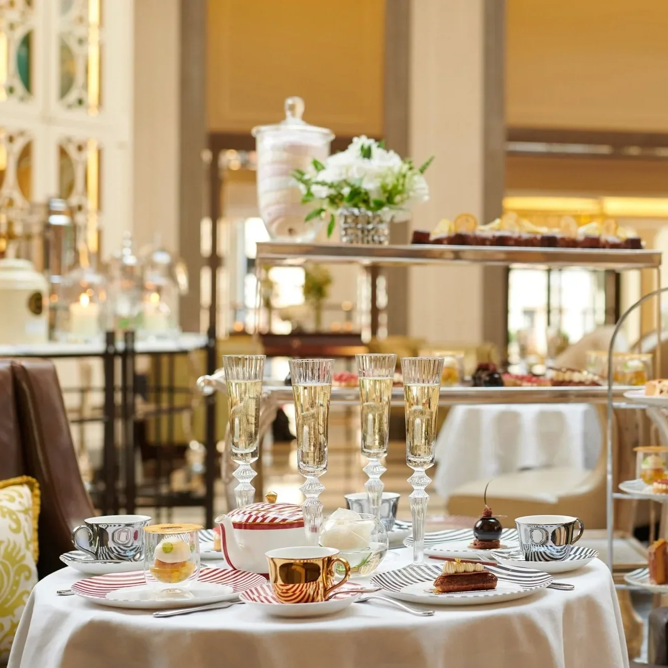 Afternoon tea at the Corinthia London unfolds under the glow of a 1,001-crystal Baccarat chandelier, in the hushed splendour of the Crystal Moon Lounge. With a Steinway piano playing softly in the background and fine china set on white linen, the setting feels simultaneously grand and intimate. Service is thoughtful: your tea-master will introduce bespoke blends, the pastry trolley arrives with refined theatre and every course feels full of polish and grace. From £95 per person.
