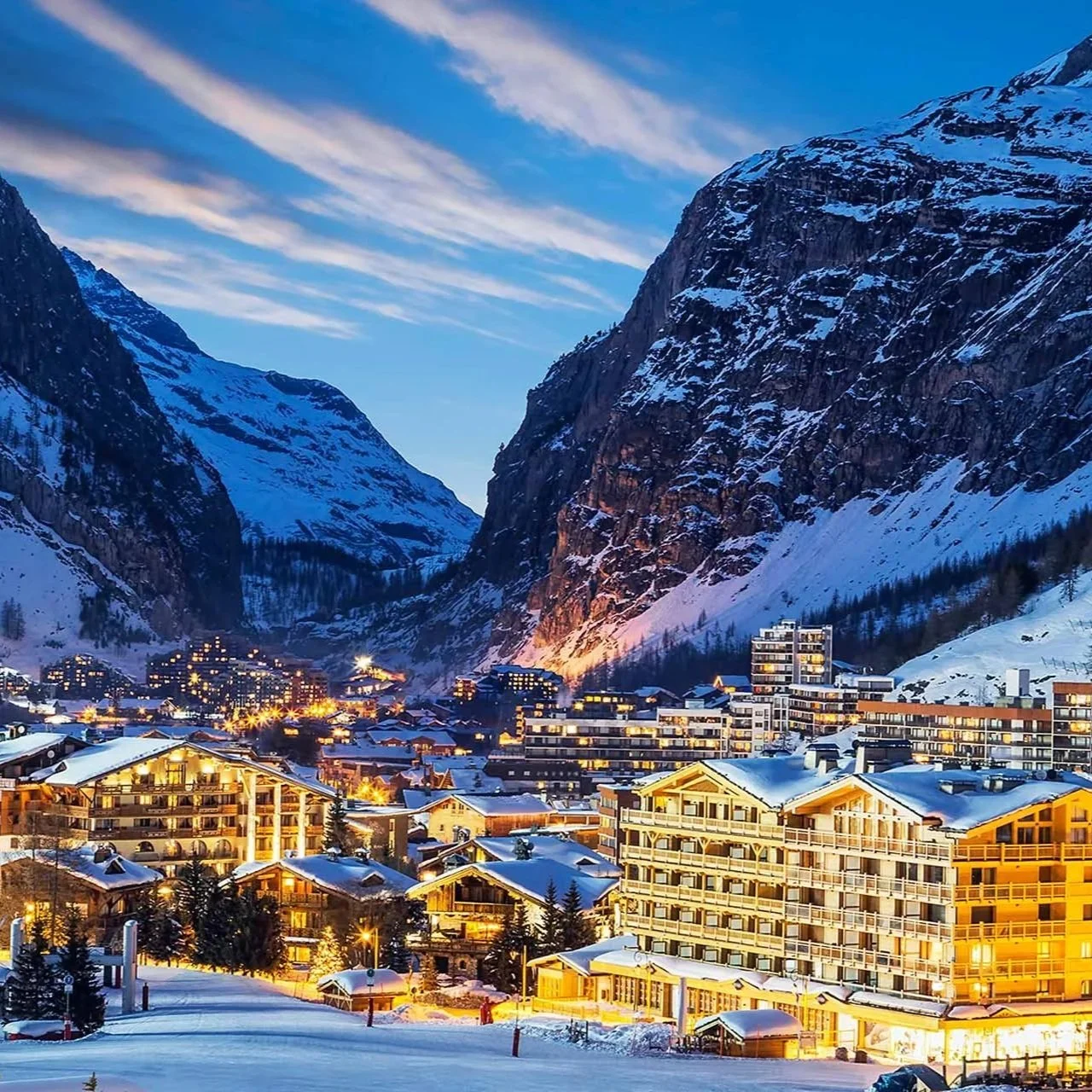 Val d’Isère lives for the late afternoon. Slopeside terraces fill with music, laughter and clinking glasses as the sun dips behind the mountains. Ski long, winding blue runs by day, then move easily into a night of dancing, Champagne and Savoyard feasts. It is a resort where energy rises and the line between après and evening beautifully blurs.