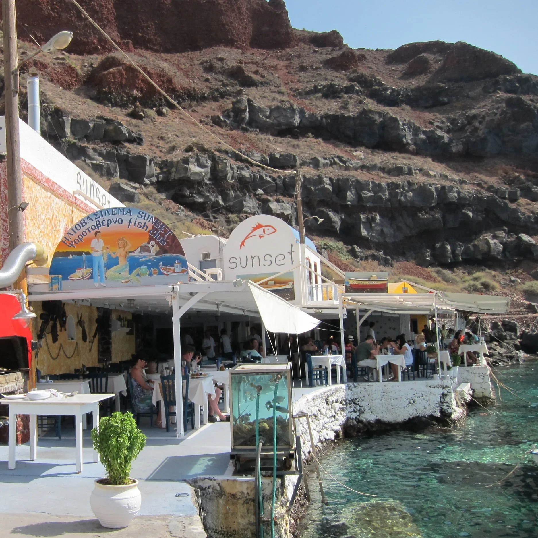 Nestled in the charming harbour of Ammoudi Bay, Sunset Taverna offers a quintessential Greek dining experience with its fresh seafood and traditional island fare inspired by Santorini’s rich culinary heritage. Known for its laid-back atmosphere and front-row views of the island’s legendary sunsets, this seaside gem captures the essence of Mediterranean dining in one of the island’s most picturesque settings.
